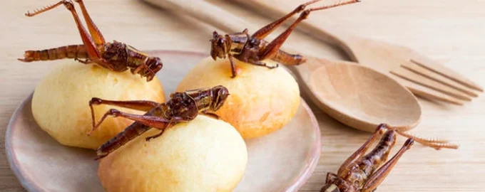 Foto: fra åbne kilder Græshopper, fårekyllinger og billelarver optræder i stigende grad ikke kun på menukortet på asiatiske markeder, men også i proteinbarer