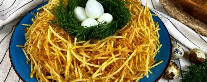 Den originale salat “Grouse’s Nest” eller “Quail’s Nest” er en ideel variant af, hvad man kan tilberede til en ferie. Opskriften er ukompliceret og tilgængelig for alle. Og resultatet er så velsmagende, at ingen vil nægte en opfyldning.