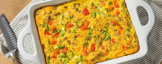Til forberedelsen skal du bruge pølse eller skinke, æg, mel, hævemiddel, smør, peberfrugt, forårsløg, krydderier og en bageform.